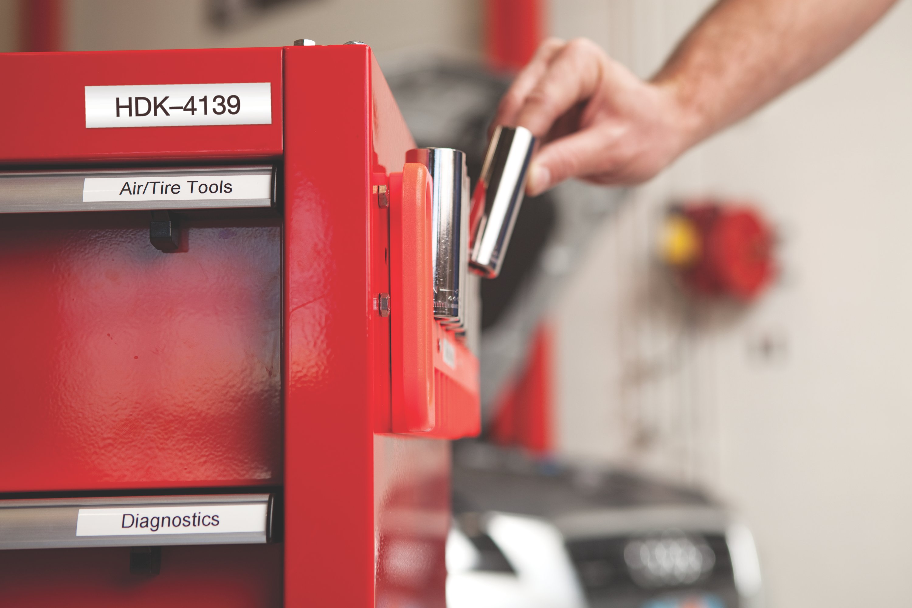 ملصقات DYMO مقاومة للمواد الكيميائية.