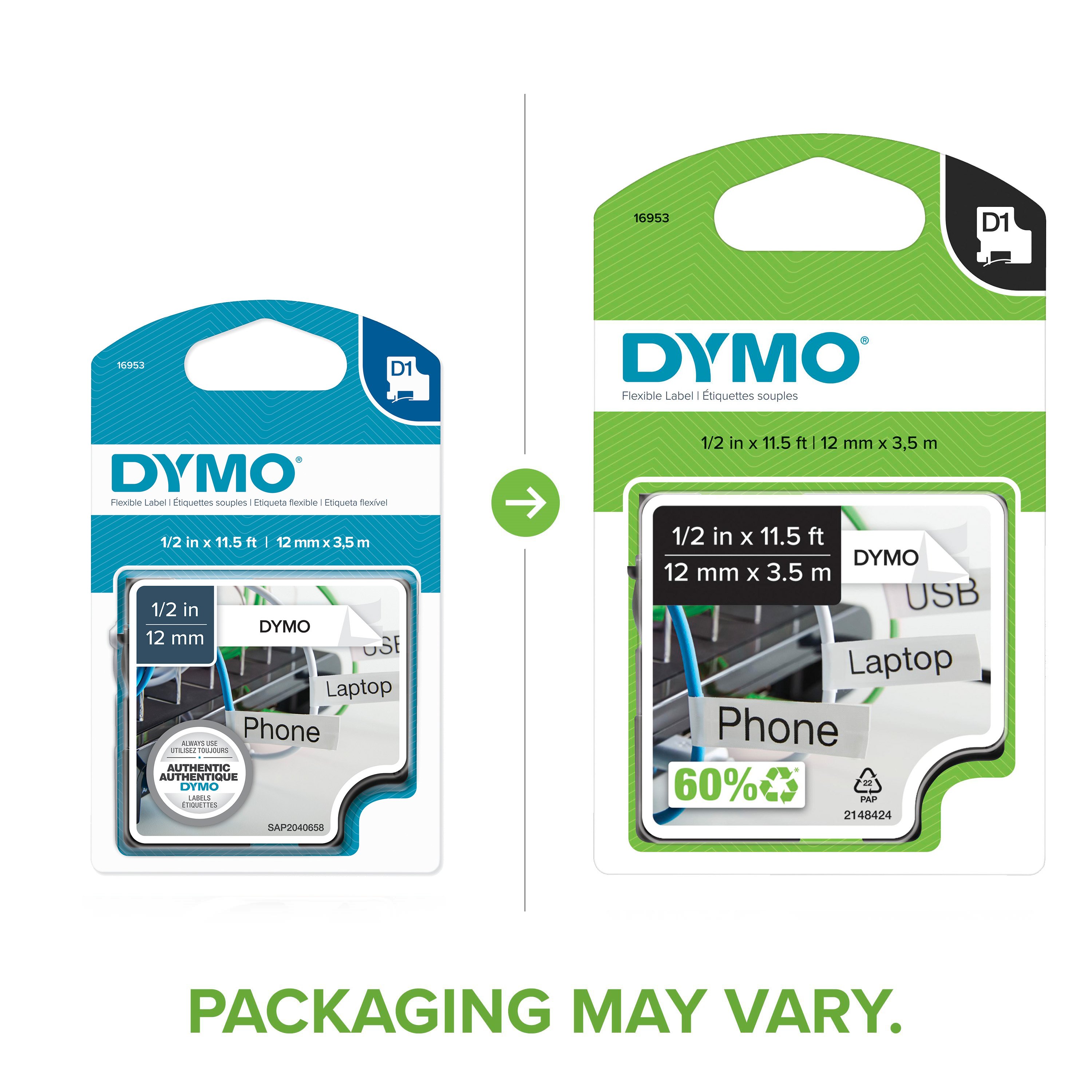 يعد شريط صانع الملصقات المرن من النايلون DYMO D1 مثاليًا لتغليف الأسلاك والكابلات. إنها مقاومة للذاكرة، لذا فهي تلتف بسهولة حول الأسطح المنحنية وتبقى على هذا النحو. يحتوي شريط صانع الملصقات DYMO باللونين الأسود والأبيض أيضًا على دعامة لاصقة تلتصق في البقع الزيتية المتسخة. تم تصميم لفة الملصقات هذه خصيصًا للاستخدام مع صانعي ملصقات DYMO، بمقاس 1/2 بوصة × 11 1/2 بوصة.