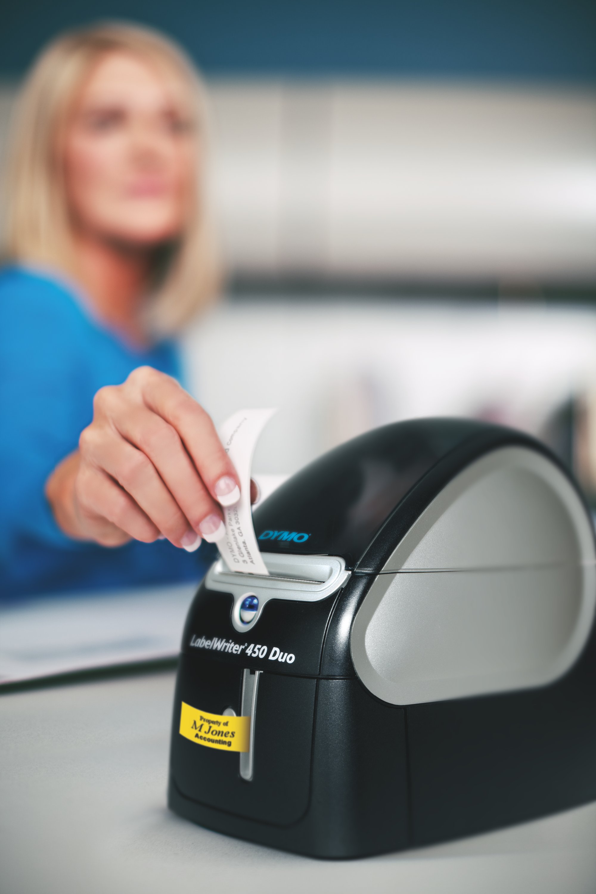 طابعة الملصقات الأكثر تنوعًا لدينا، DYMO LabelWriter 450 Duo تطبع ملصقات LW، وملصقات بلاستيكية D1 وملصقات IND متينة بحيث يمكنك تولي أي مهمة وضع ملصقات تقريبًا. يمكنك طباعة ملصقات العناوين أو علامات الأسماء باستخدام ملصقات LW، ثم التبديل بسهولة إلى ملصقات D1 لاحتياجات حفظ الملفات. يمكنك توصيل صانع ملصقات Duo بجهاز الكمبيوتر الشخصي أو جهاز Mac الخاص بك ويمكنك الطباعة مباشرة من مجموعة متنوعة من البرامج الشائعة أو إنشاء ملصقات مخصصة باستخدام برنامج DYMO Label. يمكنك الآن معالجة أي مهمة تقريبًا باستخدام طابعة ملصقات واحدة متعددة الاستخدامات.