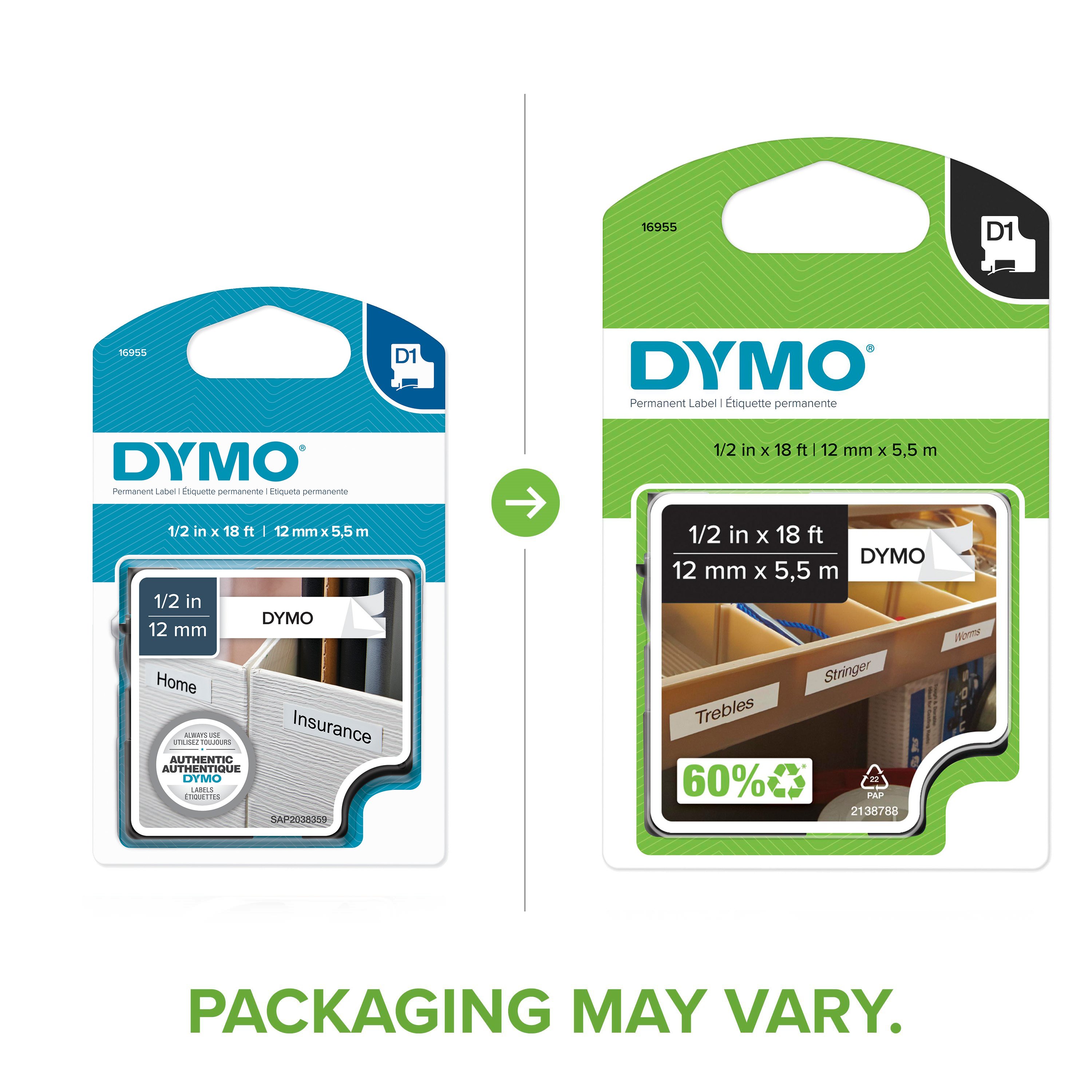 يلتصق شريط صانع الملصقات الدائم DYMO D1 بمعظم الأسطح بما في ذلك البلاستيك والورق والمعادن والخشب والزجاج. مثالي لملصقات اللوازم المكتبية والإكسسوارات الإلكترونية والمزيد، هذا الشريط اللاصق مقاوم للماء ومقاوم أشعة الشمس دون أن يتلاشى أو يتقشر. مصمم خصيصًا للاستخدام مع صانعي ملصقات DYMO، يبلغ حجم هذا الشريط 1/2 بوصة × 18 بوصة.